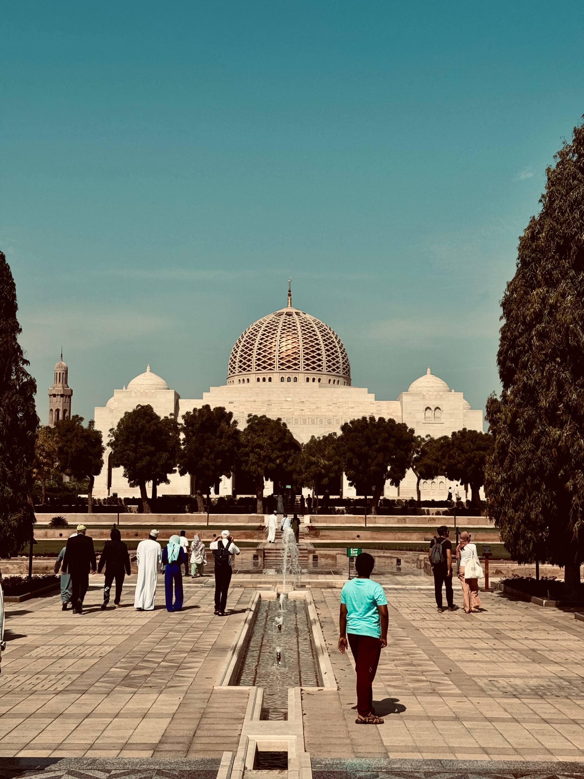 🇴🇲 阿曼的美是我始料未及的:首都马斯喀特的海岸线绵延着,一艘游轮正停靠在苏丹卡布斯港,船上游客借此机会可以一览马斯喀特的独特风韵;大清真寺中悬挂着灿丽的施华洛世奇水晶吊灯,重达8吨;沿海山峦上的古堡则各有千秋,矗立在峭壁之上,登塔远眺,城市风景一览无余,再往远处又是绵延不绝的山脉。